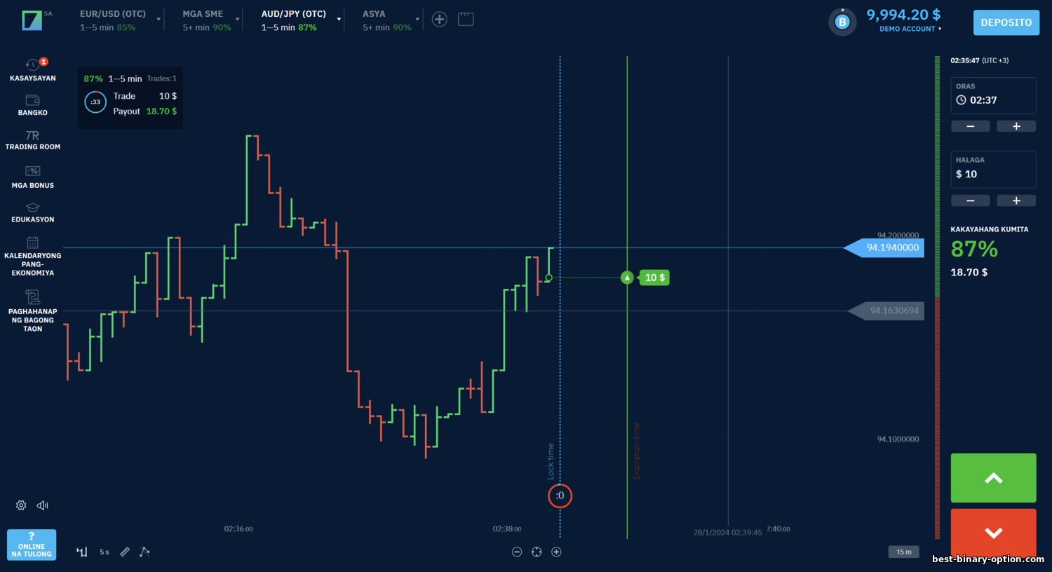 - Hanay ng Asset & Uri ng Options: Nag-aalok ang Pocket Option hindi lang ng klasikong binaries kundi pati ng mas malawak na listahan ng asset (higit 100), kasama na ang mas maraming stocks at ilang mga kakaibang crypto tokens. Nagbibigay din sila ng napaka-ikli na expiration (mula 5 or 10 seconds), na wala sa Binarium. Mainam ito para sa mahilig sa scalping. Pareho naman silang may mga short at long-term trades, subalit mas kakaunti ang asset ni Binarium.