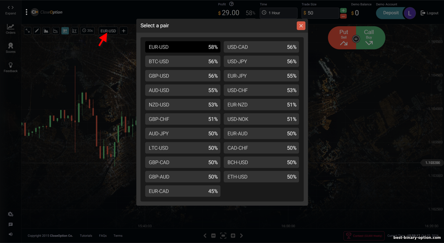 Ang Pocket Option ay isa sa kilalang offshore na Plataporma sa Pangangalakal ng Binary Options, sikat dahil sa maraming feature. Paghahambing:- Mga Asset: Mahigit 100 sa Pocket Option—kabilang ang currency, crypto, stocks, indices, at commodities. Limitado lang sa currency at crypto ang CloseOption. Malaking kakulangan ito para sa CloseOption.