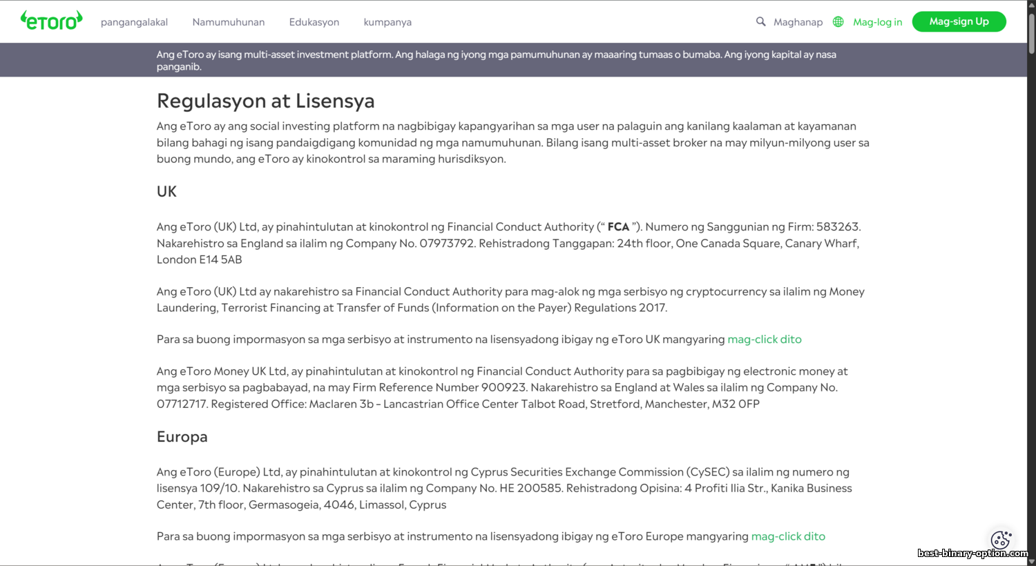 - Pagiging maaasahan ng eToro, lisensya at regulasyon