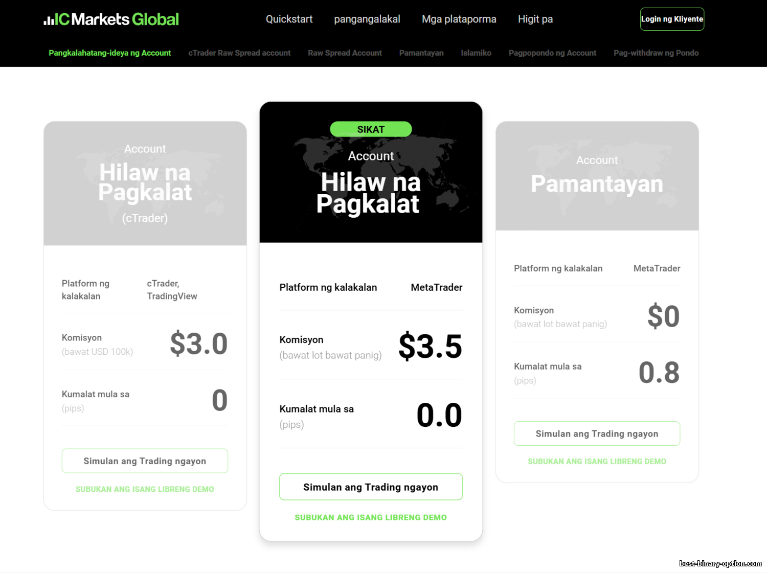 Simple ang IC Markets: sa esensya dalawang pangunahing uri ng account, parehong available sa maraming plataporma. Ganito ang hati: