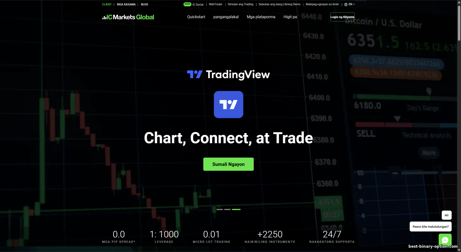 Bakit TradingView? Malaking library ng indicator (kabilang ang community scripts), mahusay na charts, custom layouts, at social features (ideas, chats, streams). Maraming bagong trader ang mas gusto ang TradingView para sa analysis — pinadali ito ng IC Markets.
