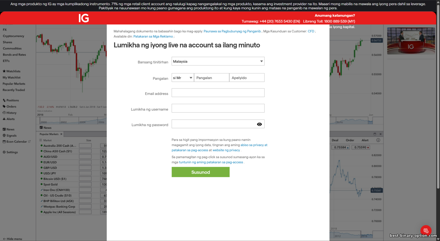 Isipin ang isang broker na higit 40 taon nang nagpapatakbo at nag-aalok ng libo-libong instrumento sa buong mundo. Iyan ang IG (IG Markets) — isang tagapanguna sa online na pangangalakal at isa sa pinakamalalaking CFD at forex provider sa mundo. Itinatag ang kumpanya noong 1974 sa UK ng kilalang financier na si Stuart Wheeler at noong una’y tinawag na IG Index. Simula noon, malaki ang paglago ng IG: ang punong-tanggapan ay nasa London at may mga opisina sa limang kontinente (kabuuang 14 na pandaigdigang opisina). Ang IG Group — magulang ng broker — ay pampublikong nakalista sa London Stock Exchange at kabilang sa FTSE 250. Ibig sabihin, regular na naglalathala ang broker ng na-audit na financial statements, na dagdag sa kredibilidad nito.