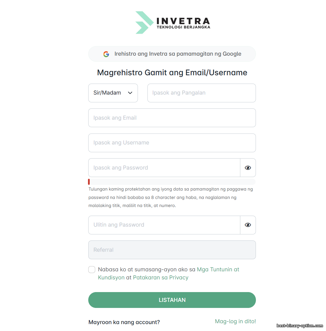 Ang Invetra ay bagong manlalaro sa online na pangangalakal, nag-aalok ng Forex at CFDs at ipinoposisyon ang sarili bilang isang prop-trading na plataporma (pagpopondo sa mga trader). Ang broker ay inilunsad sa huling bahagi ng 2024 at pinatatakbo ng PT Invetra Teknologi Berjangka. Heograpikal na nakatali ang Invetra sa Indonesia—ang parent company nito ay rehistrado roon at may lokal na lisensya. Ipinagmamalaki ng broker ang modernong setup: maaaring mag-trade ang mga kliyente sa MetaTrader 5 at humingi pa ng pagpopondo sa pamamagitan ng prop program. Mula sa umpisa, nilapitan ng Invetra ang mga trader ng binary options at CFD, na may pangakong inobasyon at kompetitibong mga termino.