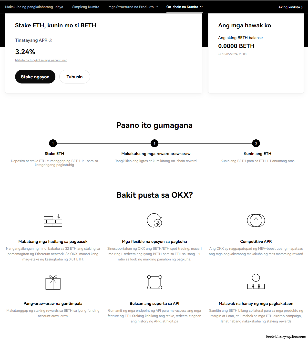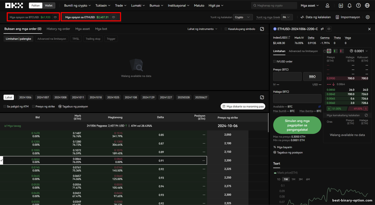 Isang advanced na feature ng OKX ay ang pangangalakal ng cryptocurrency options. Ito ay mas kumplikadong derivatives na nagbibigay ng karapatan (ngunit hindi obligasyon) na bumili o magbenta ng asset sa nakatakdang presyo sa hinaharap. Dati, pinaghaharian ng mga espesyal na plataporma (tulad ng Deribit) ang options market, ngunit matagumpay itong naisama ng OKX para sa mga user nito.