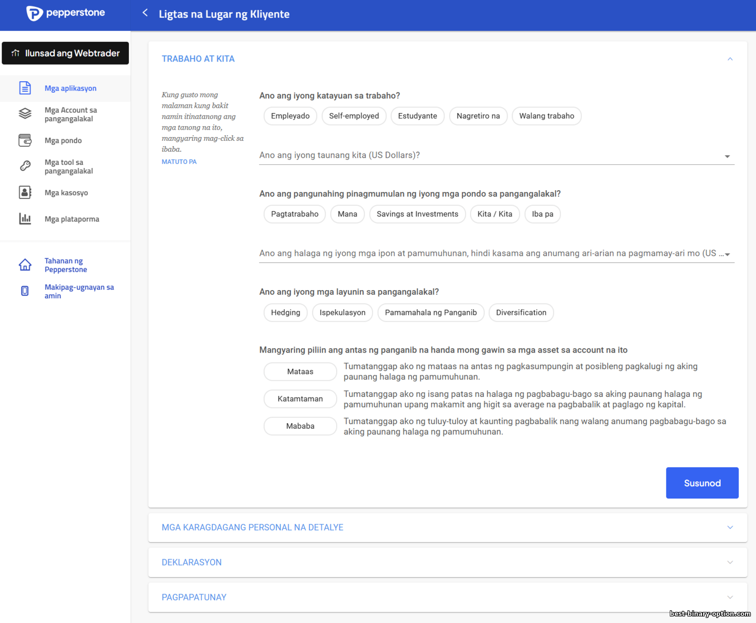 - Mga restriksyon sa bansa. Mula 2022, tumigil ang Pepperstone sa pag‑onboard ng mga bagong kliyente mula Russia (internal policy at sanctions risk).