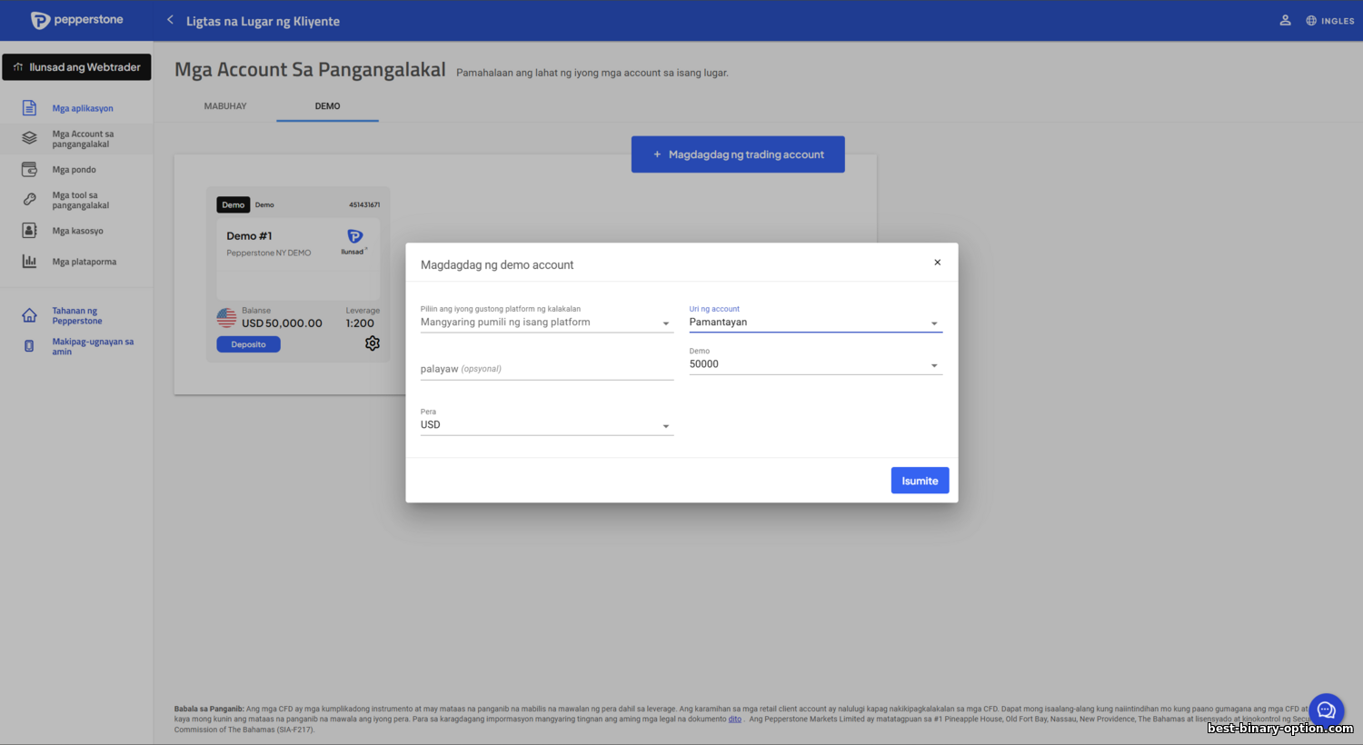 - Virtual balance. Nagbibigay ang Pepperstone ng $50,000 virtual funds (depende sa base currency). Kung maubos o kailangan ng dagdag, humiling ng top‑up. Pinakamainam na mag‑ensayo sa halagang malapit sa aktuwal mong ide‑deposito—mas realistiko sa sikolohiya.