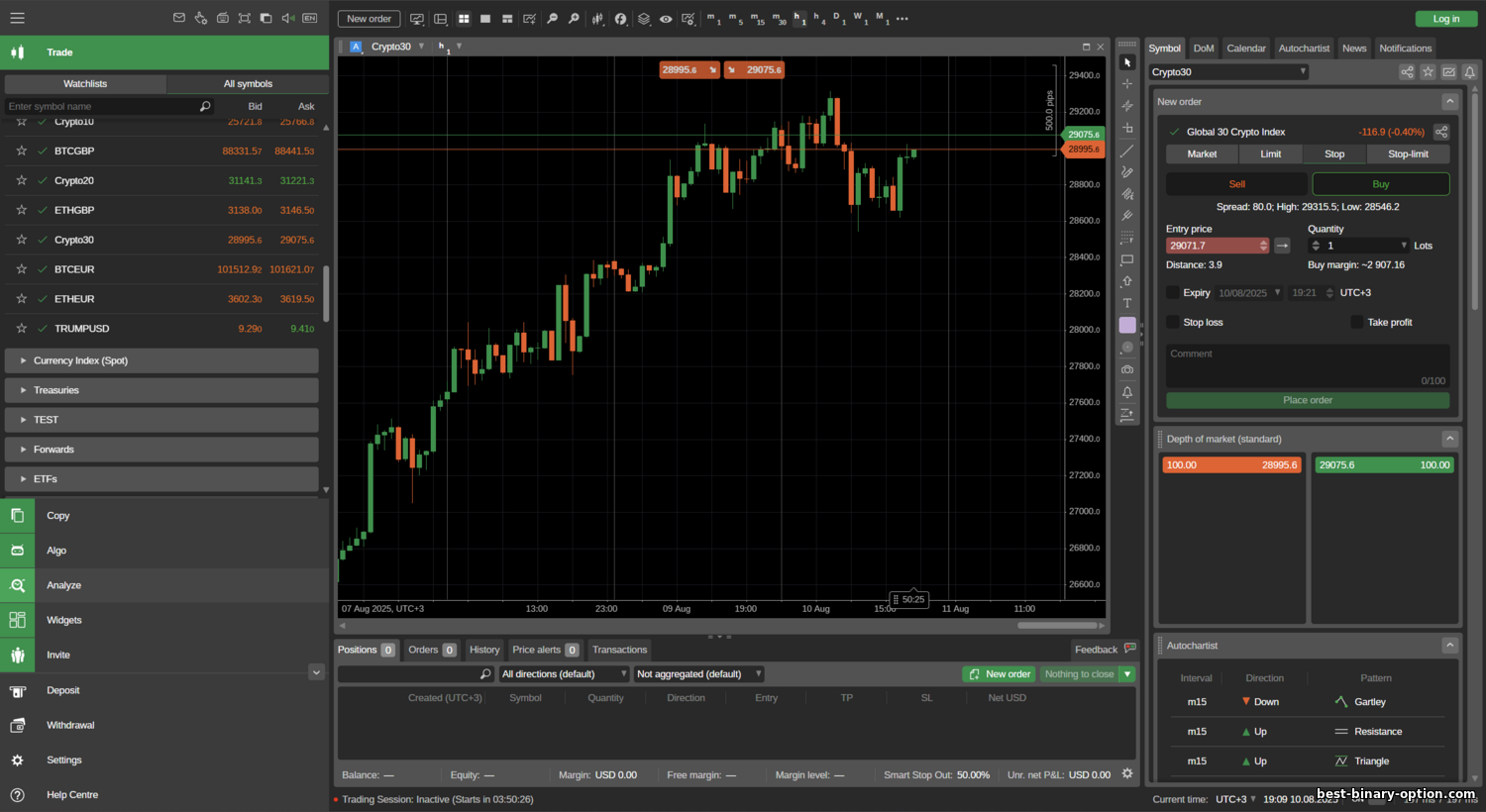 - Walang swaps. Kapag na‑enable, hihinto ang platform sa pag‑credit/debit ng swaps tuwing 00:00 server time. Maaari kang mag‑hold hangga’t nais nang walang interest—kapaki‑pakinabang sa commodities o indices na kadalasang mataas ang swaps.