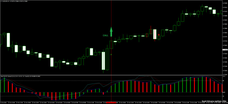 - Ang MACD histogram ay berde at higit sa zero level