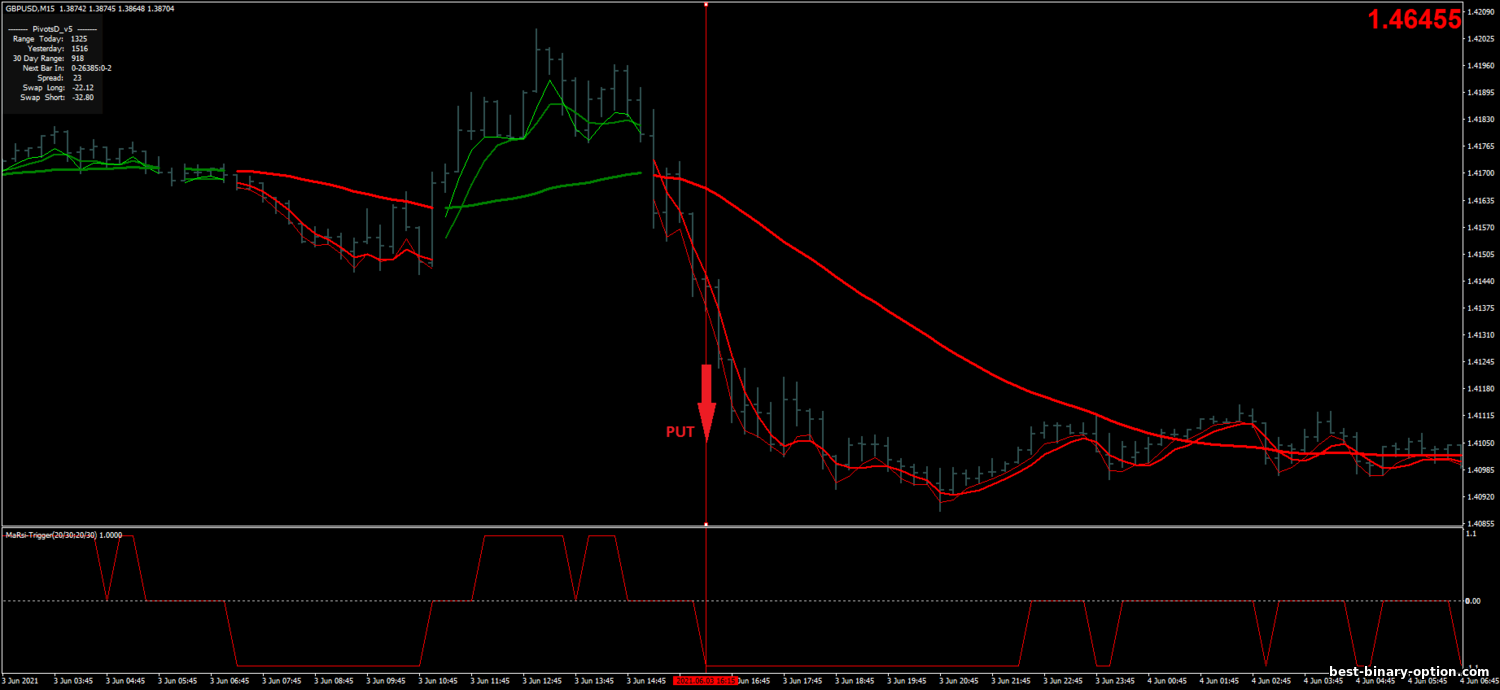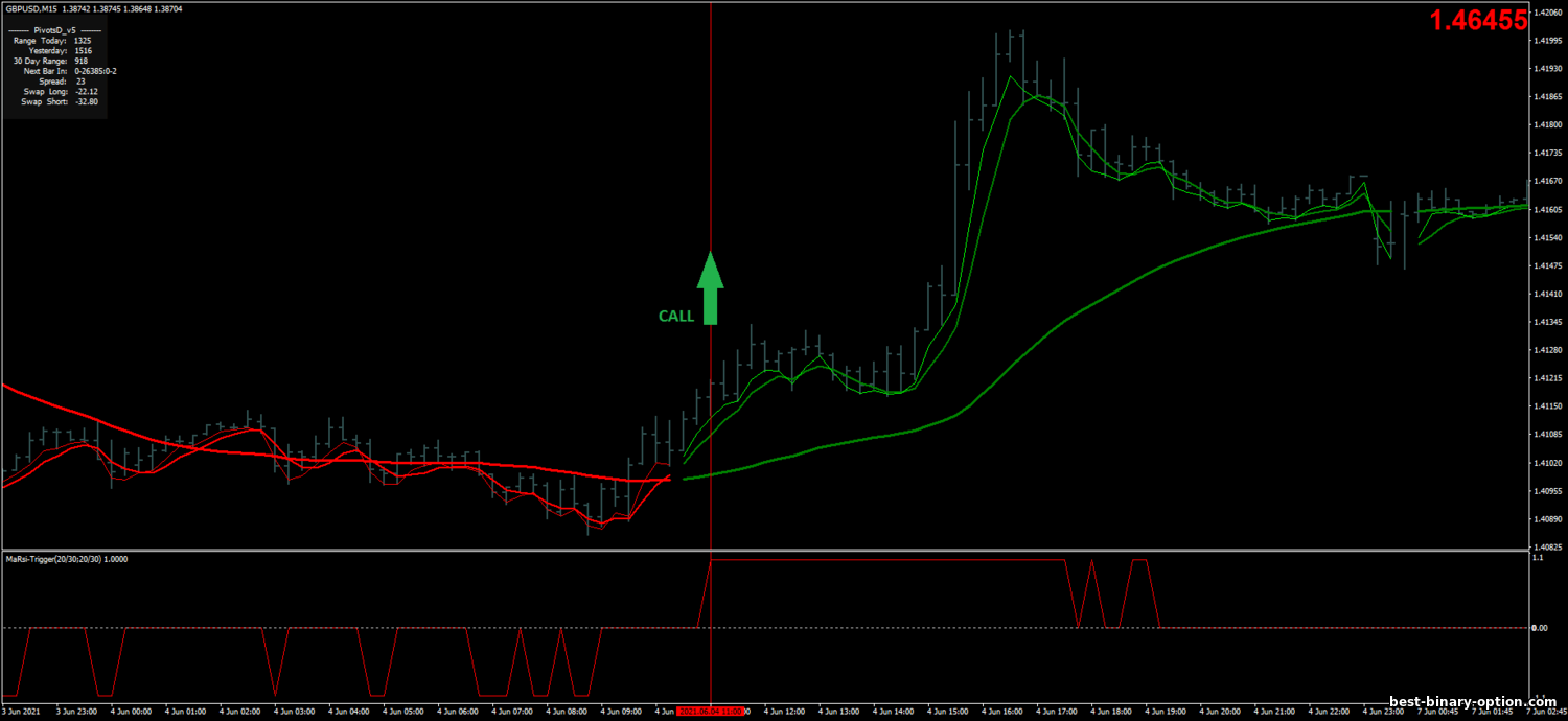 Diskarte para sa binary options, Forex at CFD - MA RSI Scalping - isang diskarte na batay sa tatlong MA RSI indicator at isang Trigger bilang filter, na nagbibigay-daan sa iyong makahanap ng mga signal ng trading para sa up at down na mga trade.