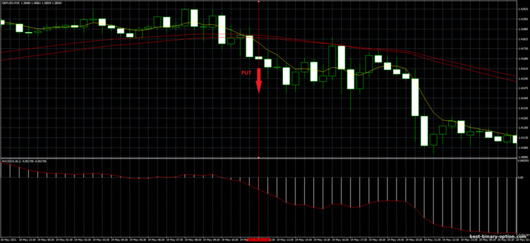 - Diskarte sa MACD Trend Trading System: pababang signal