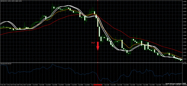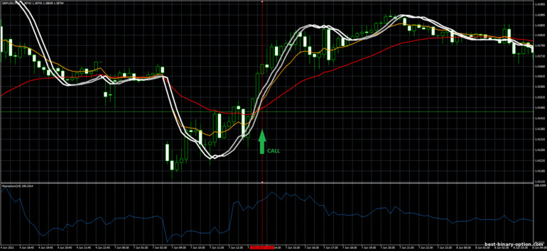 - Ipasok kapag bumukas ang susunod na kandila pagkatapos tumawid sa moving averages